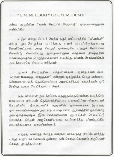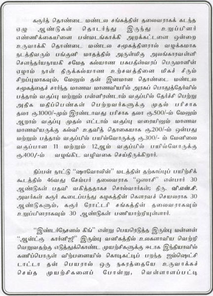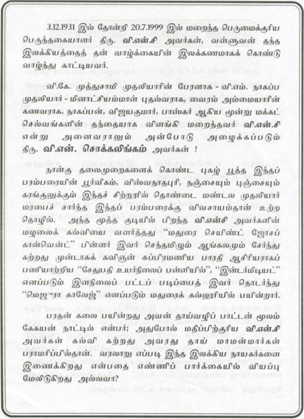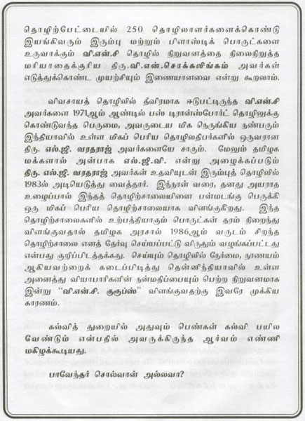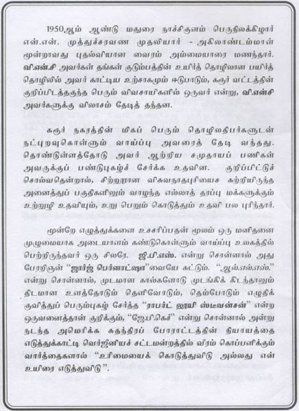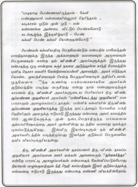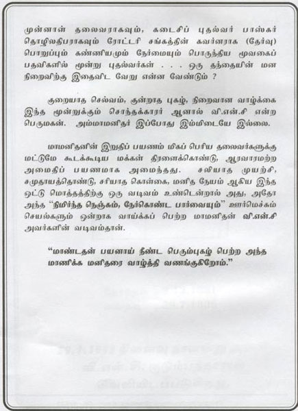 His Social Life As Thiru V.N.C (Booklet Issued In Tamil)